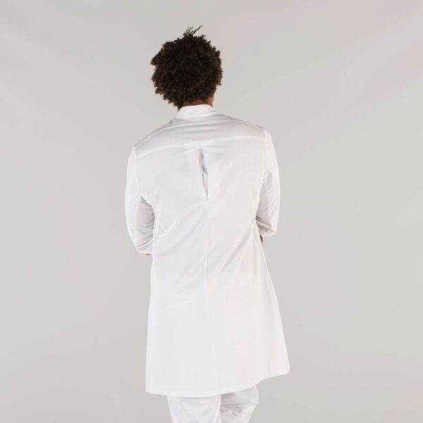 Es ideal como uniforme para enfermería, doctores y demás profesionales sanitarios en hospitales, clínicas y centros médicos, laboratorio, farmacia o veterinario. Disponible también en modelo para mujer.