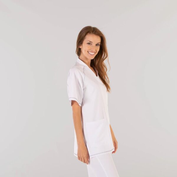 Ideal como uniforme para enfermería, doctores y demás profesionales sanitarios en hospitales, clínicas y centros médicos, farmacia, veterinario, estética, spa o comercio.