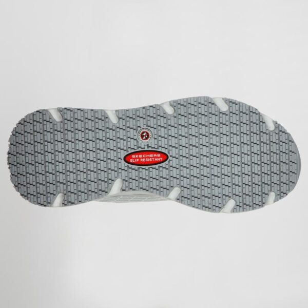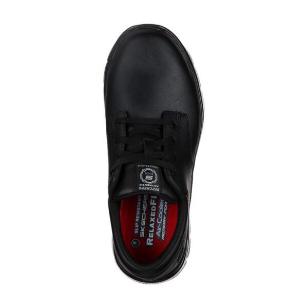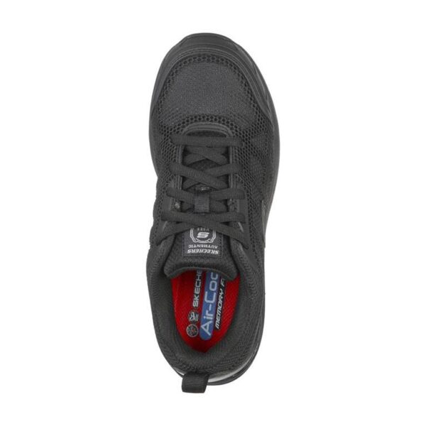 Parte superior de resistente tejido sintético liso y malla en una zapatilla deportiva de trabajo con puntera protegida. Con cordones, detalles de costuras, suela antideslizante perfecta para el trabajo y plantilla SKECHERS Memory Foam.