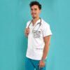linea e-motion: 95% poliéster y 5% spandex. Casaca de hombre muy elástica con tejido antibacteriano, de corte recto. 1 bolsillo de pecho y 2 bolsillos ribeteados de almacenamiento. Aberturas laterales, trabilla en hombro y pespuntes decorativos con triple aguja. Esta casaca ofrece prioridad a la comodidad, destacando por la elasticidad de su tejido y maximizando la libertad de movimientos.