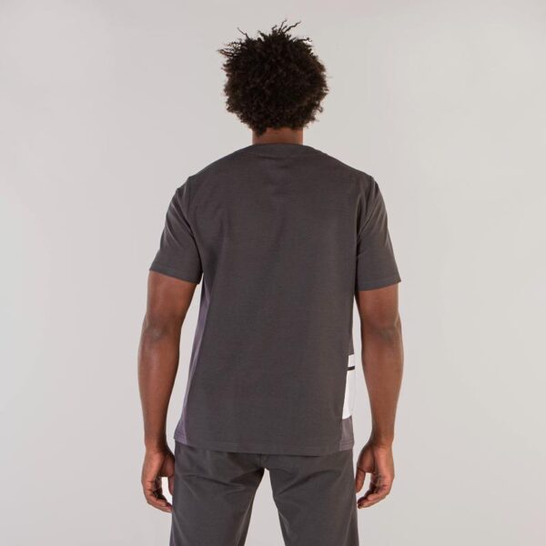 Casaca para hombre en manga corta, con cuello pico, dos bolsillos en delantero y un bolsillo con cremallera en el costadillo derecho. Prenda holgada, con aberturas laterales y costadillos en delantero y trasero.